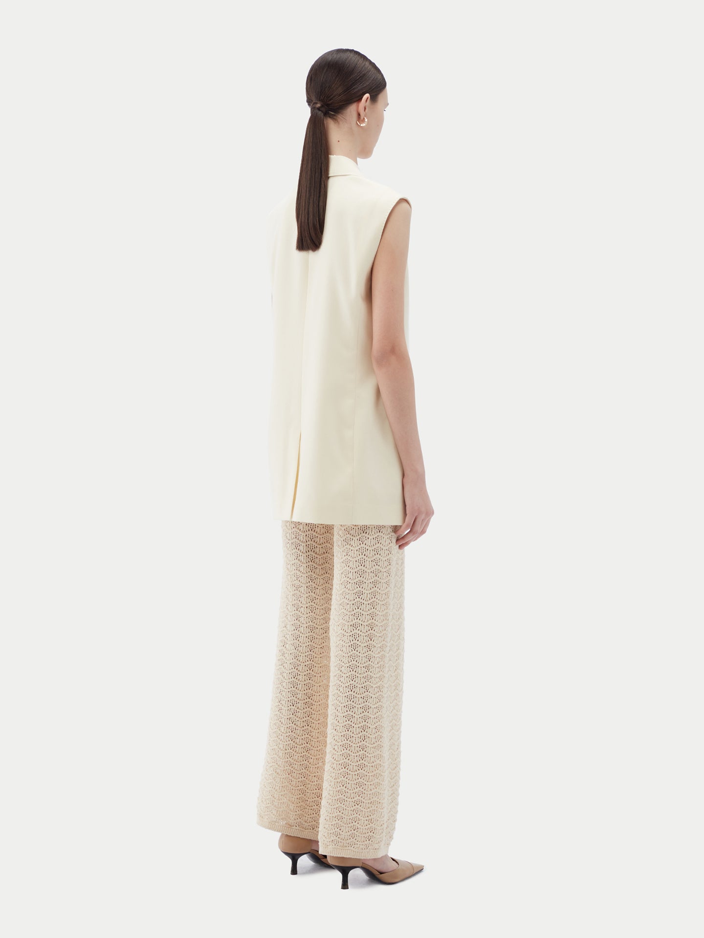 Vêtement luxueux confectionné dans le cachemire mongol le plus authentique. Il présente une silhouette intemporelle et ajustée avec un revers à pointe et un boutonnage croisé moderne. Les poches avant pratiques renforcent à la fois le côté fonctionnel et le style, faisant de ce gilet l’élément parfait pour parfaire une tenue élégante.