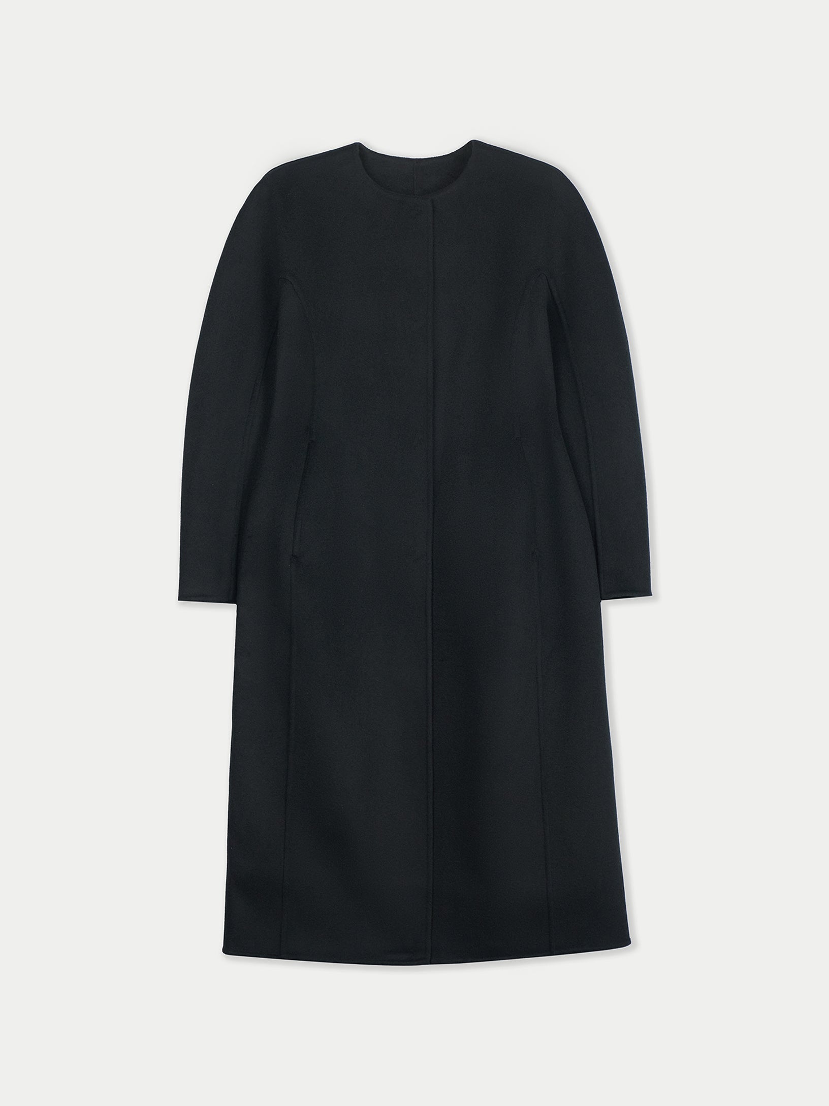Alliant la chaleur et le luxe du cachemire 100% à un design distinctif, ce manteau crée un look unique et raffiné. Les manches ovales, le col rond, la taille définie et la fermeture cachée par boutons forment une silhouette nette et élégante.
