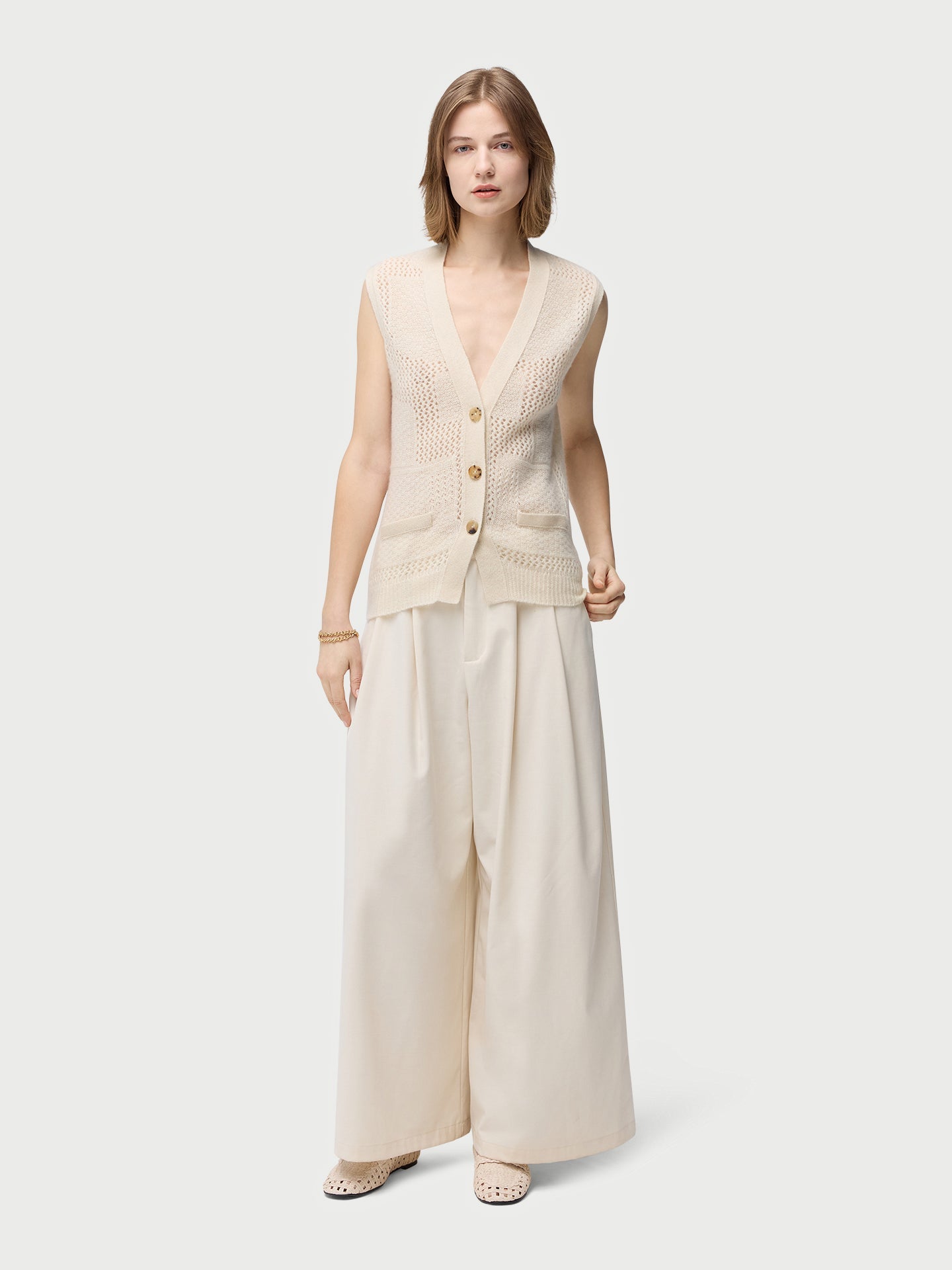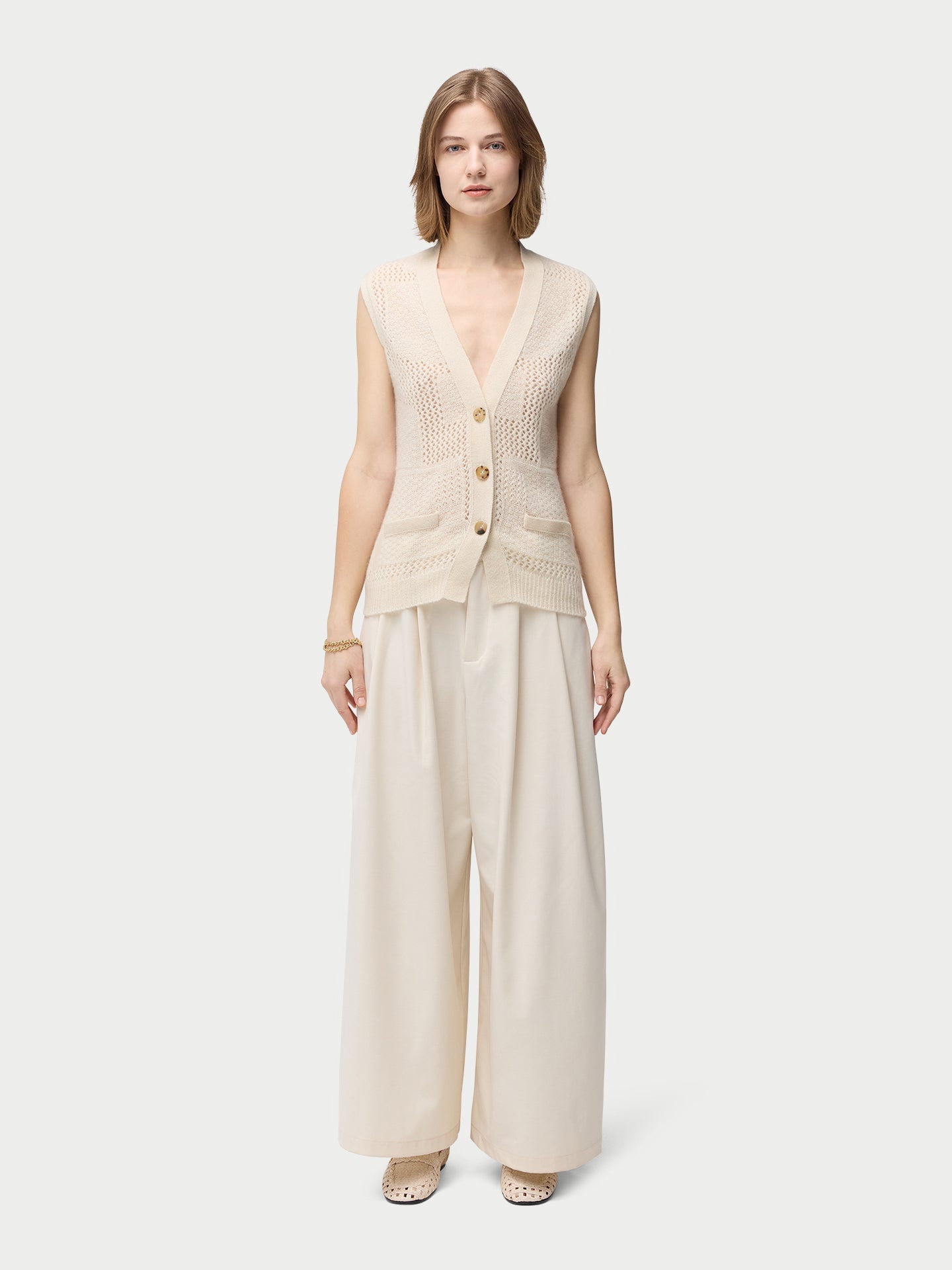 This Mixed Pattern Cashmere Vest showcases Gobi Cashmere's commitment to innovative craftsmanship, boasting a beautiful blend of the ajour and pique knits. The regular fit ensures a flattering silhouette, offering versatility in styling for a range of occasions including formal and casual outings.